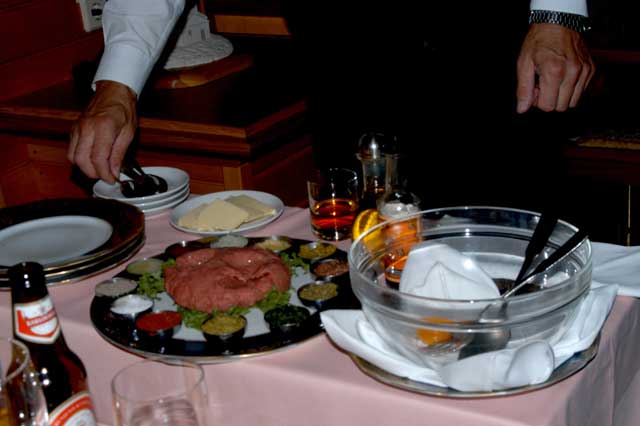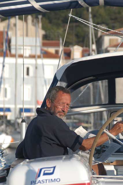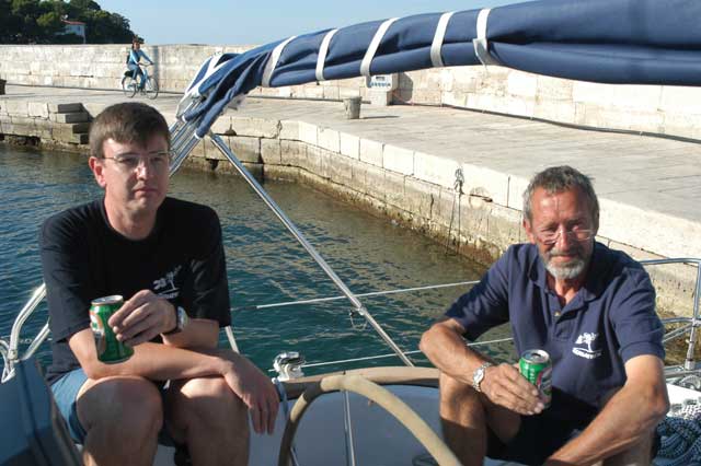 | Danach passt die Windrichtung für Brijuni. Hier gibt es das kulinarische Highlight für Tartar Liebhaber. Dieses Mal teilt Rainer die Riesenportion mit Bernhard. Hunger genug haben wir ja nach unserer Fahrradtour über die Insel. Auch hier ist offensichtlich die Saison zu Ende, sie kommen nicht einmal mehr zum Kassieren. |