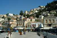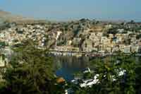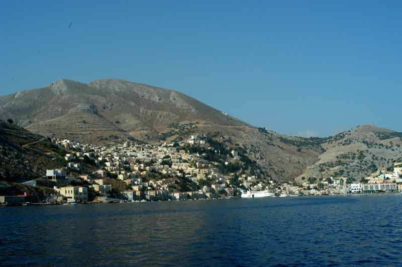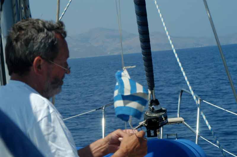 July 11th: The destination of today is the Greek island of Symi only 14 nautical miles away. After the change of the flag we are in Greece. You have to be early to get a berthing in the small harbour. Gasoline is much cheaper than in Turkey as beer is too. Benedikt stashes away 10 plates!!! He stores them under his mattress! |