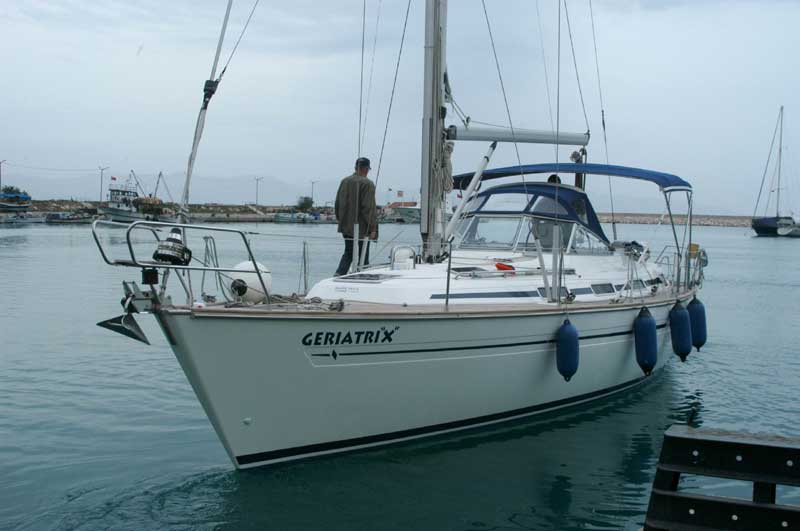 Ringsum wird an den Schiffen gewerkelt. Sogar Farbe wird zwischen den anderen Schiffen aufgespritzt! Auch wir gehen ans Reinigen und Polieren, das Antifouling hat Rainer ja schon bei seinem Kurzbesuch im Januar aufgetragen. Da geplanter Krantermin erst in über einer Woche ist, müssen wir uns die Arbeit einteilen und die Arbeitswut hält sich in Grenzen. Rumpfpolieren ist schon ein Scheissjob! Das Schiffchen sieht wieder schön aus. Leider nur für zwei Tage, dann kommt der Wind aus Süden und damit der Saharasand. Dazu der Blütenstaub und alles ist wieder dreckig. Als es dann auf noch drauf regnet, ist es mit der Sauberkeit wieder vorbei. |