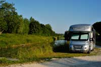 Wir haben Bett und Haus dabei, die anderen ziehen in die Luxus-Suite des Campingplatzes.